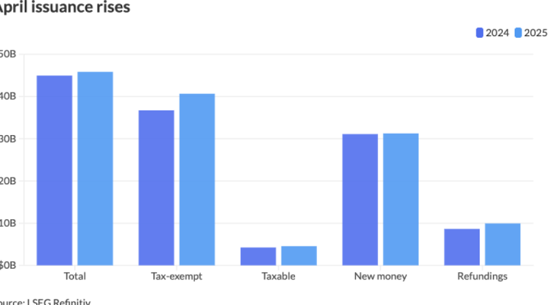 Read More<img src=”https://public.flourish.studio/visualisation/22950150/thumbnail” width=”100%” alt=”chart visualization” /> Revised issuance figures for April show the month eked out gains year-over-year, as a