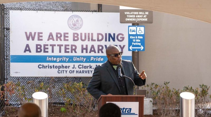 Read MoreHarvey, Illinois, Mayor Christopher J. Clark spreaks at a ribbon cutting ceremony in 2024. Last week, he spearheaded the city’s