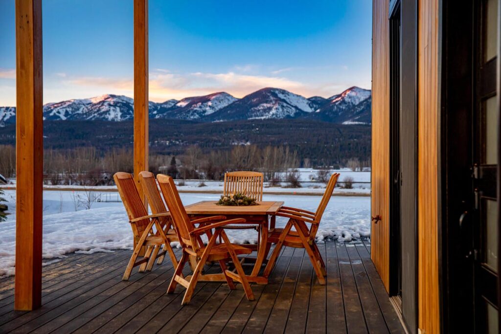 The five-bedroom, six-bathroom home along Whitefish Airport enjoys 360 views of the Flathead National Forest and the Rocky Mountains.